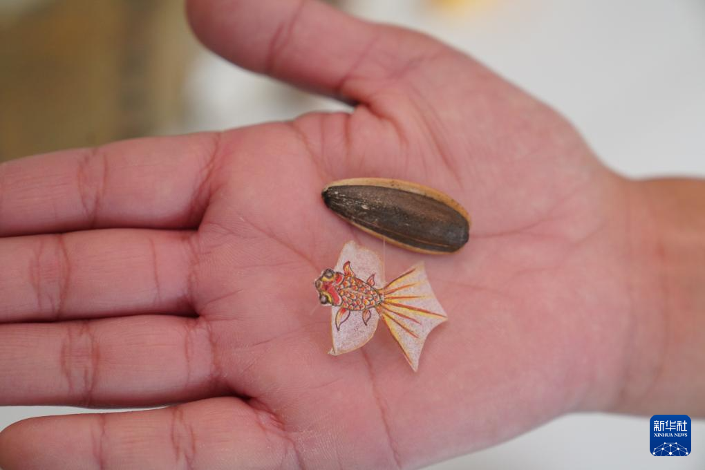 10月14日,在山(shan)東(dong)省(sheng)濰坊(fang)市寒亭區的一家風箏(zheng)(zheng)作坊(fang),工(gong)作人(ren)員在展(zhan)示一款迷你風箏(zheng)(zheng)。
