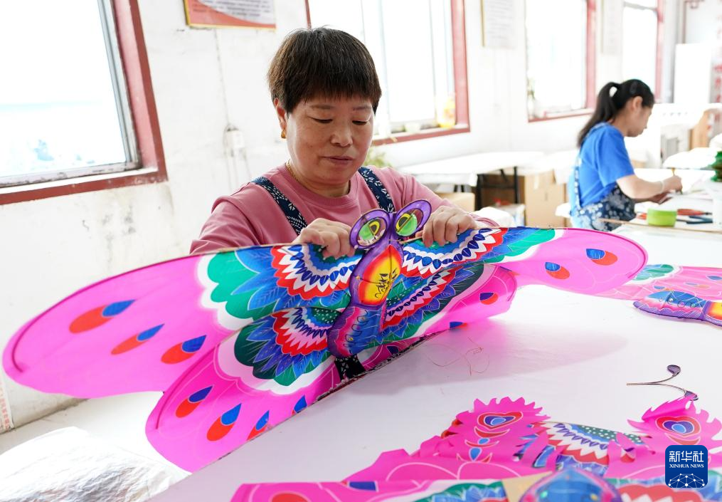 10月14日,在山(shan)東省濰(wei)坊市寒(han)亭區的一(yi)家風箏生產企(qi)業,工人(ren)在制作風箏。