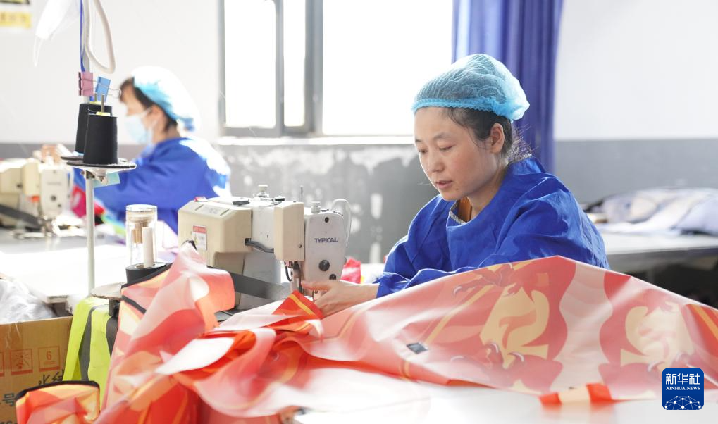 10月14日,在(zai)山東省濰坊市寒亭區(qu)的一家(jia)風箏生產(chan)企(qi)業,工人在(zai)制作風箏。