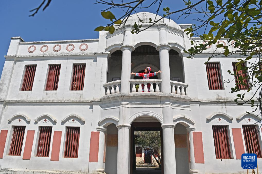 游客在運江古鎮清代法式教(jiao)堂打卡拍(pai)照(10月11日(ri)攝)。