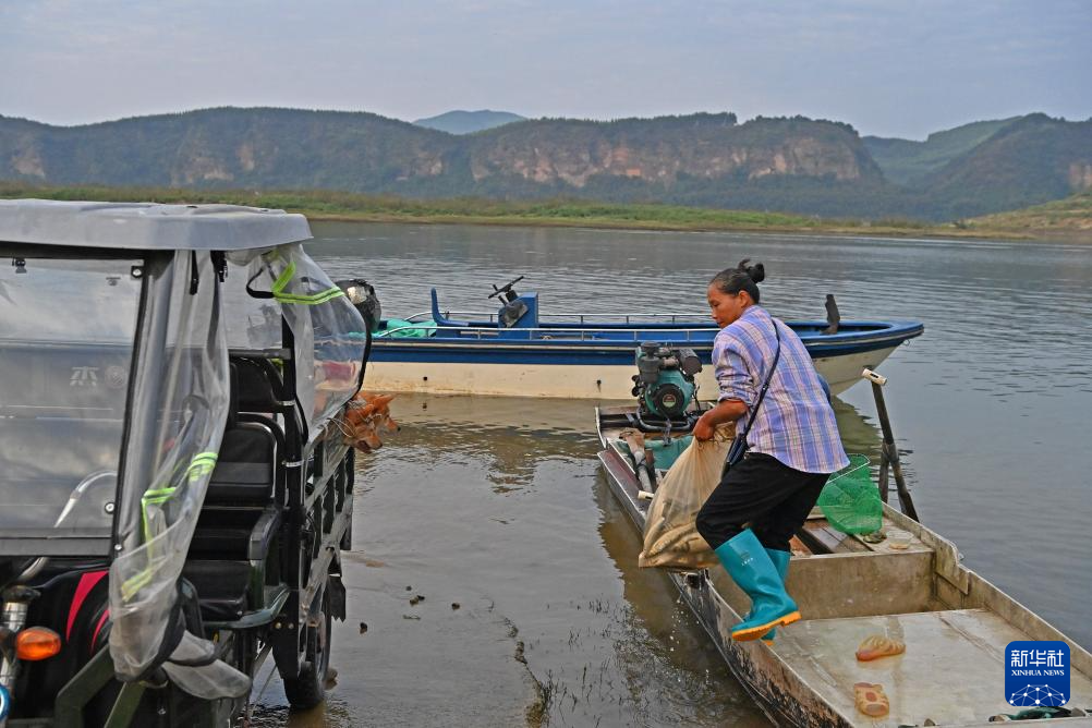 運江古(gu)鎮的居民從(cong)船上搬(ban)運魚貨(10月(yue)11日攝)。