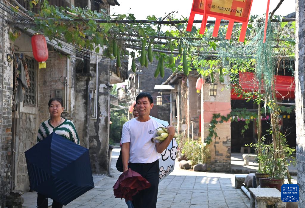 居民行走在運江古(gu)鎮(zhen)的老街上(shang)(10月11日攝)。