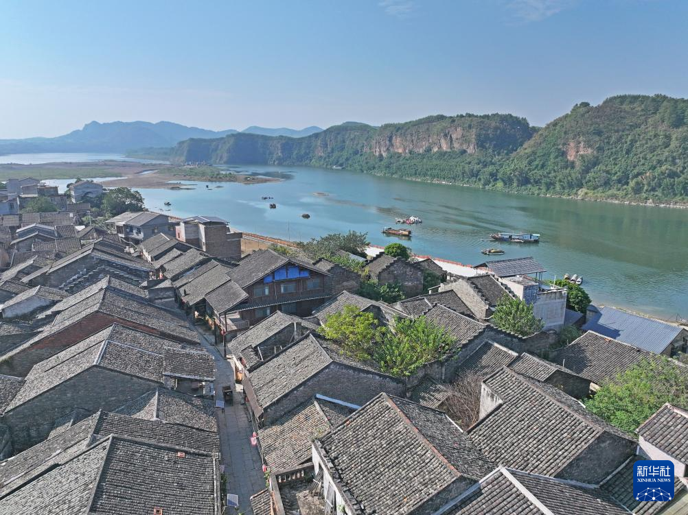 廣西來賓市象州縣運江(jiang)鎮運江(jiang)社區(qu)運江(jiang)古(gu)鎮(10月(yue)11日攝,無人機照(zhao)片)。