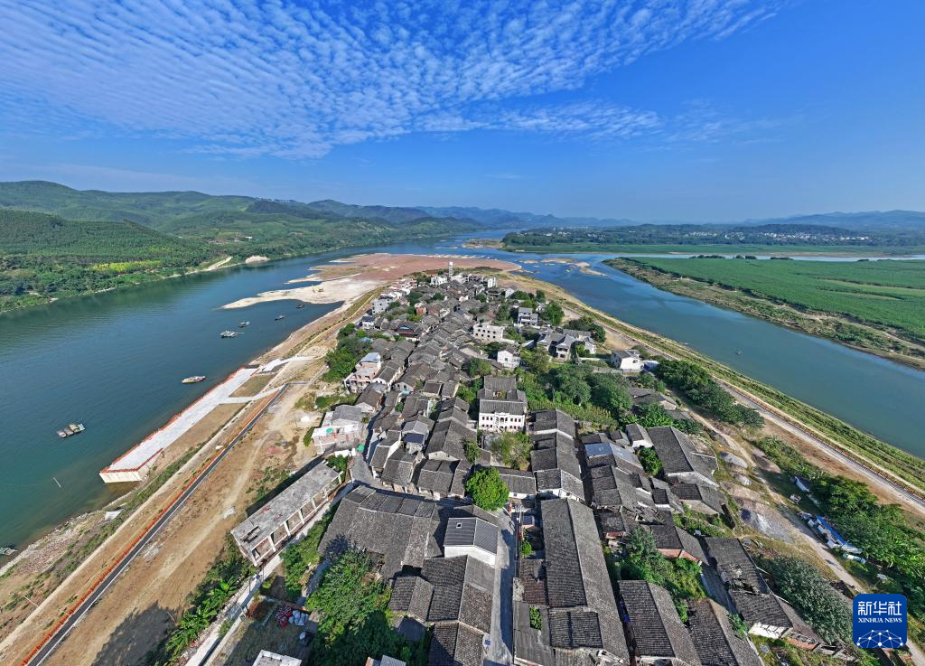 廣(guang)西來(lai)賓市象州(zhou)縣運(yun)江(jiang)(jiang)鎮運(yun)江(jiang)(jiang)社區運(yun)江(jiang)(jiang)古鎮(10月11日攝,無人機照片)。