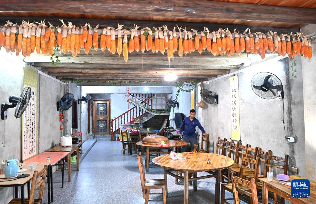 居(ju)民在運江古鎮(zhen)自家的民宿里整(zheng)理桌椅(10月11日攝(she))。