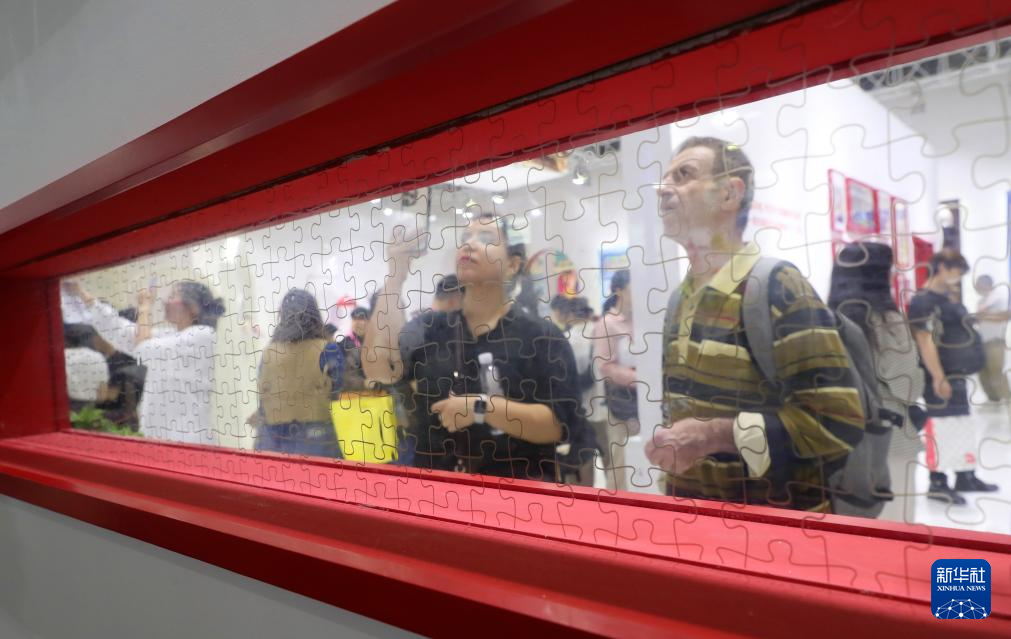 10月16日,參觀者在一家(jia)拼圖品牌企(qi)業展(zhan)臺上駐足觀看。