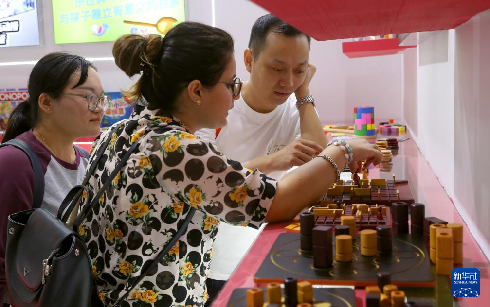 10月16日(ri),參(can)觀(guan)者在展會現(xian)場(chang)體驗一款(kuan)益智棋游戲。