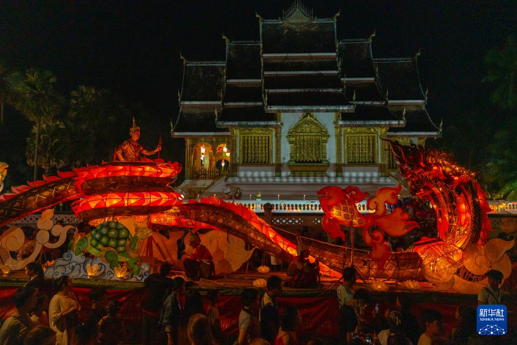 老撾瑯勃拉(la)邦10月18日迎來(lai)燈船(chuan)節。當天夜(ye)幕降臨(lin)后,人們用花燈裝點城市,舉(ju)行燈船(chuan)游行并在湄公河上(shang)放燈船(chuan),祈求來(lai)年風調(diao)雨順。