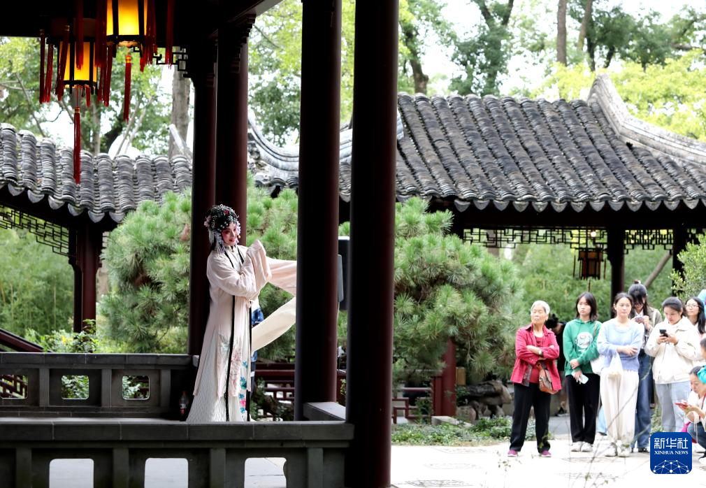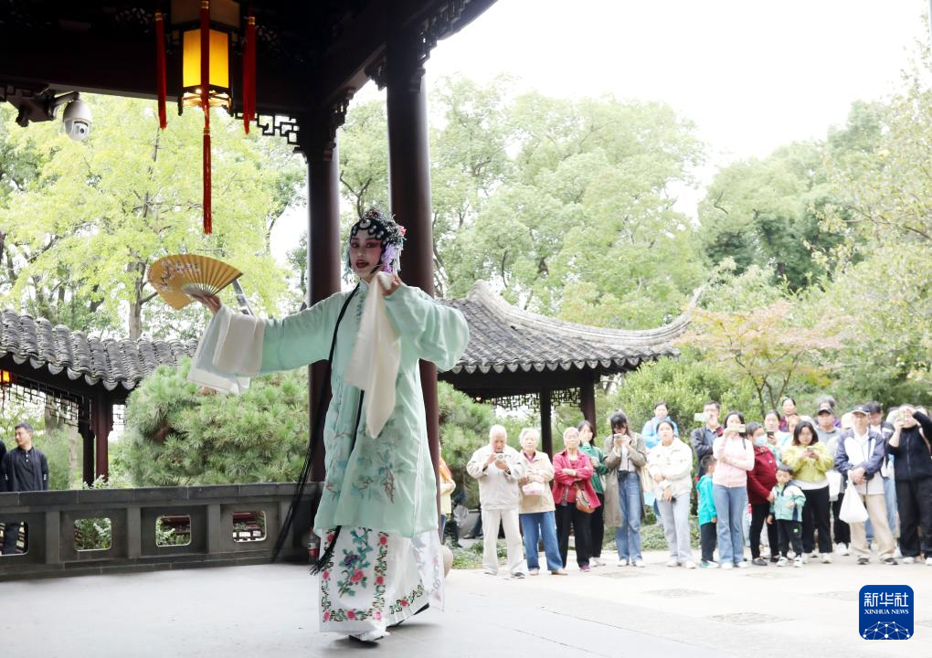 10月19日,演(yan)員在蘇州虎(hu)丘山景區為游客表演(yan)昆曲。