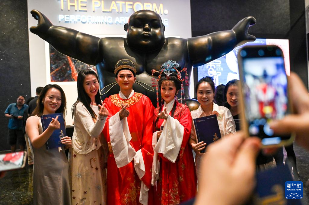 10月18日,在馬來西亞吉隆坡,觀眾(zhong)與錫劇(ju)《追(zhui)香記》的(de)演(yan)員(yuan)們合影。