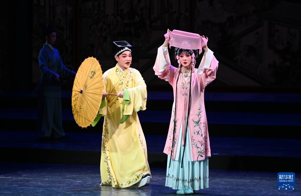 開幕式上的莆仙戲(xi)《踏傘(san)行》選段表演(10月21日攝)。