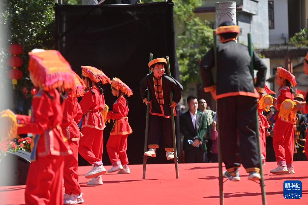 10月(yue)23日,瑤族少年(nian)在(zai)梧州市(shi)蒙山縣長坪瑤族鄉圖騰廣(guang)場表演(yan)踩高蹺。