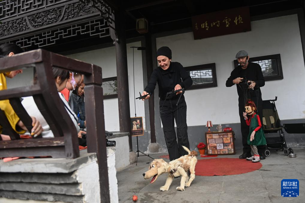 10月27日,來自意大利的(de)藝(yi)術表(biao)演者在南潯古(gu)鎮(zhen)宜園為游客表(biao)演輕喜(xi)偶劇。