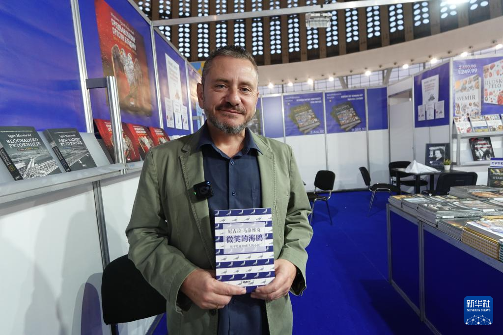10月26日,在(zai)塞爾維亞貝(bei)爾格萊德(de)的第67屆貝(bei)爾格萊德(de)國(guo)際書(shu)展(zhan)上,來自黑山的作家尼古拉·馬洛維奇展(zhan)示(shi)其作品《微笑的海(hai)鷗》中(zhong)文譯本。