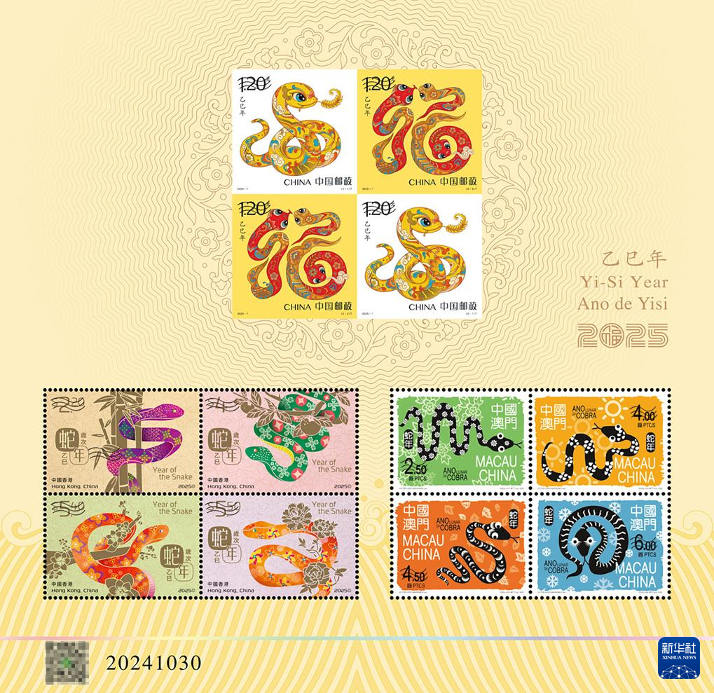 10月(yue)30日,中(zhong)國郵(you)政《乙巳年(nian)(nian)》特(te)種(zhong)郵(you)票(piao)圖(tu)稿發布(bu)儀式在北京舉行。發布(bu)儀式上公布(bu)了《乙巳年(nian)(nian)》特(te)種(zhong)郵(you)票(piao)即蛇年(nian)(nian)生(sheng)肖(xiao)郵(you)票(piao)圖(tu)稿并揭(jie)幕中(zhong)國郵(you)政攜(xie)手港、澳郵(you)政部門共同印(yin)制的(de)《乙巳年(nian)(nian)》生(sheng)肖(xiao)同題(ti)材三地小全張。