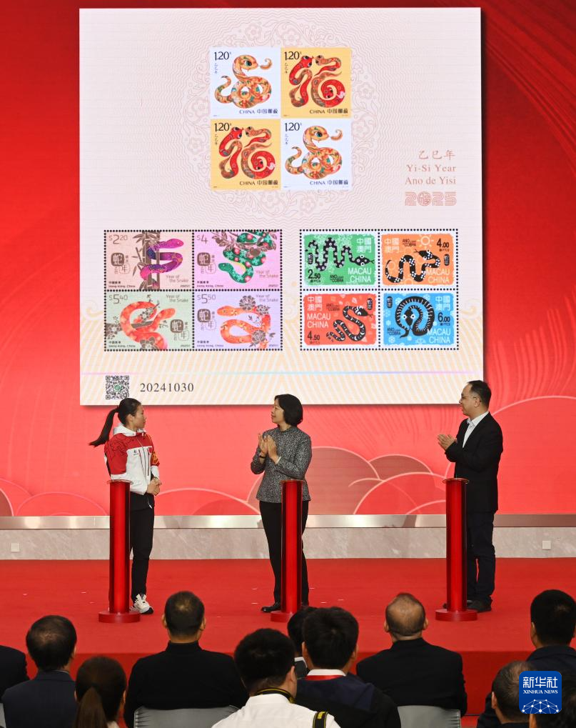 當日,中(zhong)國郵(you)(you)政(zheng)《乙巳年》特種(zhong)郵(you)(you)票圖(tu)稿發布(bu)儀式在北(bei)京舉行。發布(bu)儀式上公布(bu)了《乙巳年》特種(zhong)郵(you)(you)票即蛇(she)年生肖(xiao)郵(you)(you)票圖(tu)稿并揭(jie)幕中(zhong)國郵(you)(you)政(zheng)攜手港、澳郵(you)(you)政(zheng)部門共同(tong)印(yin)制的《乙巳年》生肖(xiao)同(tong)題材(cai)三(san)地小全張。