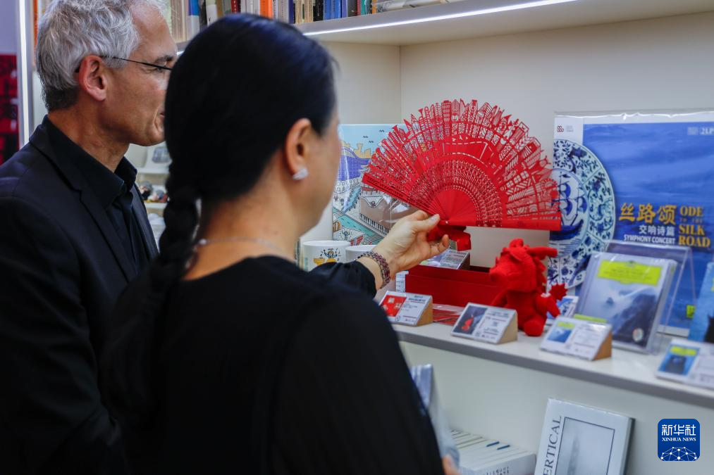 11月4日(ri),在新聞中心進(jin)行(xing)音樂(le)表(biao)演(yan)的中外藝術家(jia)演(yan)出結(jie)束后觀(guan)看展出的文創產(chan)品。