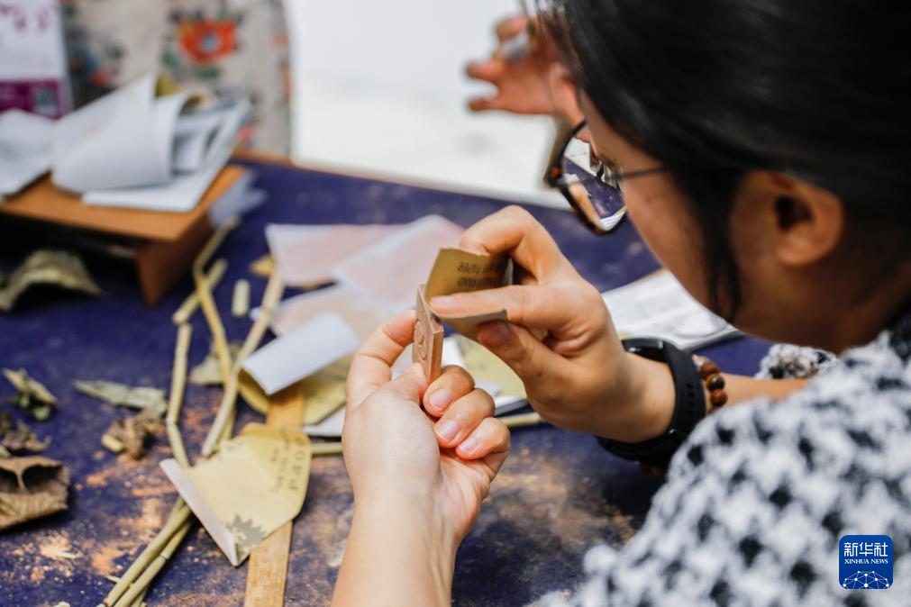 11月(yue)4日,媒(mei)體記者在上海非遺客(ke)廳內(nei)體驗漆器制作技藝。