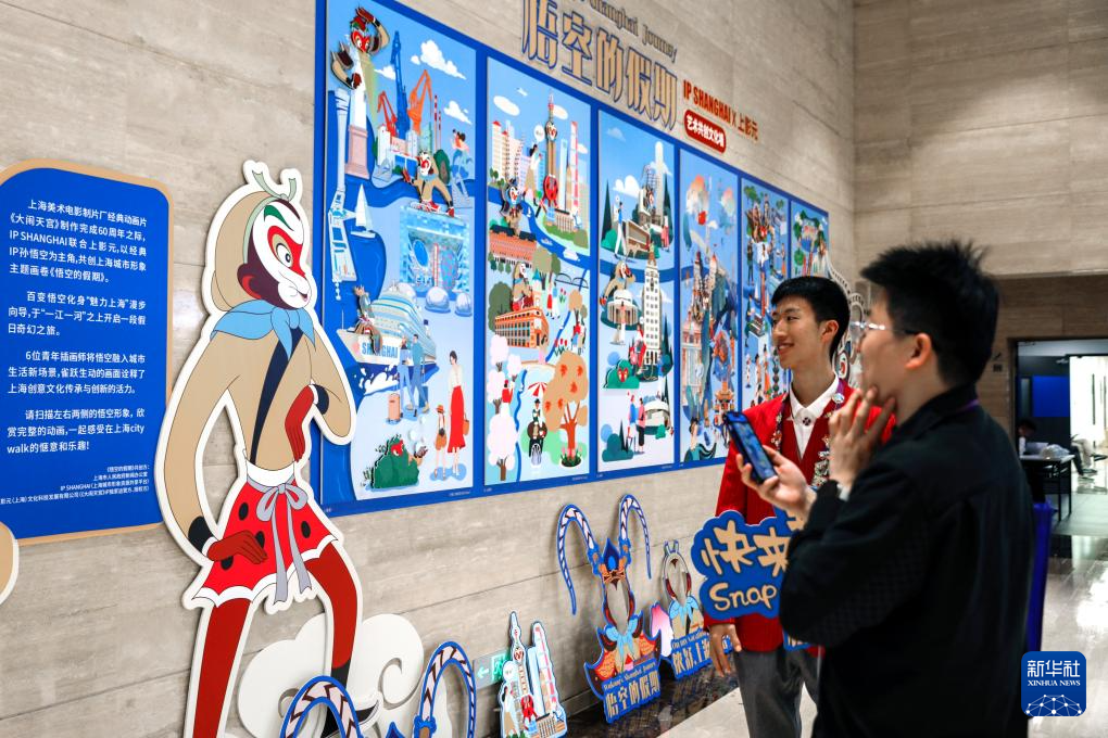 11月4日,媒體(ti)記(ji)者在上海城市形(xing)象主題畫卷《悟空的(de)假期》前駐足觀(guan)看。