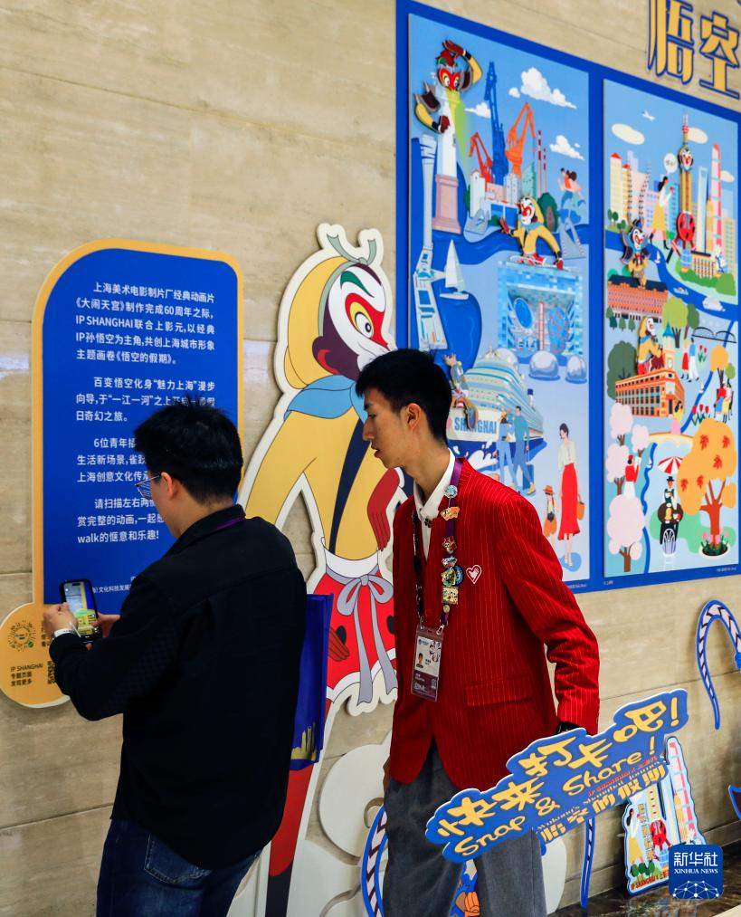 11月(yue)4日,媒體記(ji)者通(tong)過掃碼觀看(kan)上海城市形象主題畫卷(juan)《悟空的假期》。