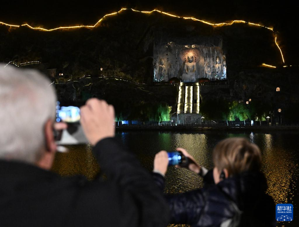 11月(yue)4日(ri),外賓在(zai)河南省洛陽市龍門(men)石窟景區禮佛臺(tai)拍照留(liu)念。