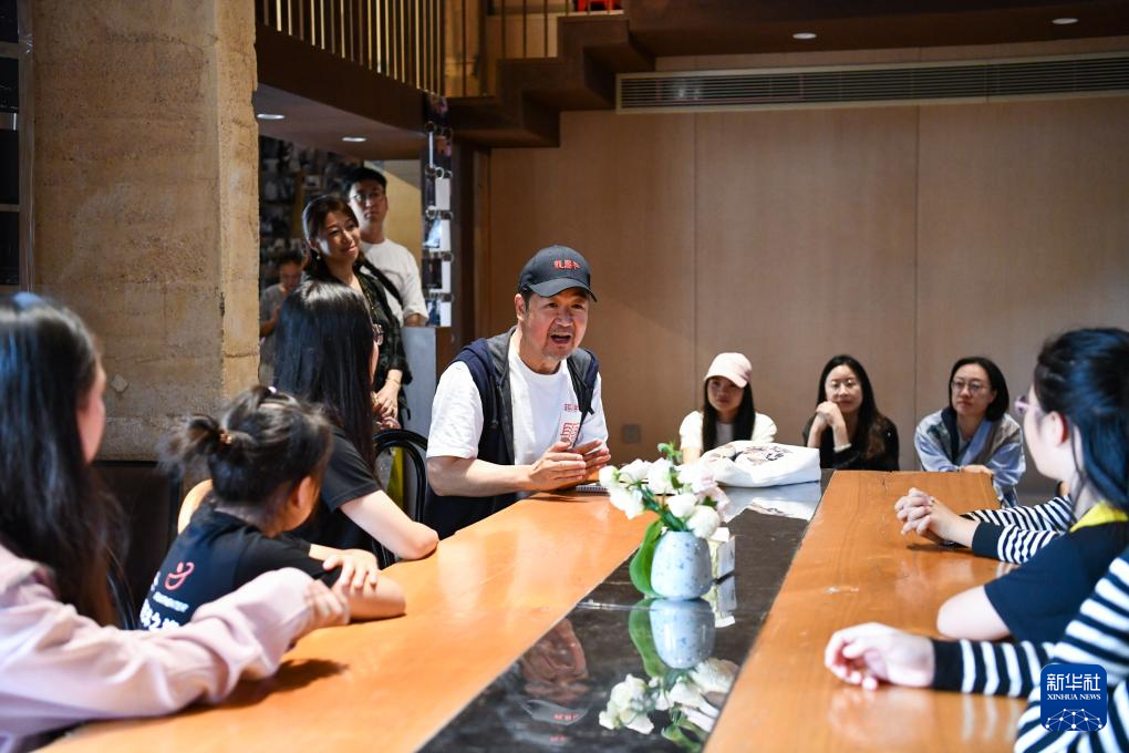 在長守戲劇谷(gu),演員(yuan)、導演張國立(li)(右下)與愛好戲劇的孩子(zi)們交流(11月9日攝)。