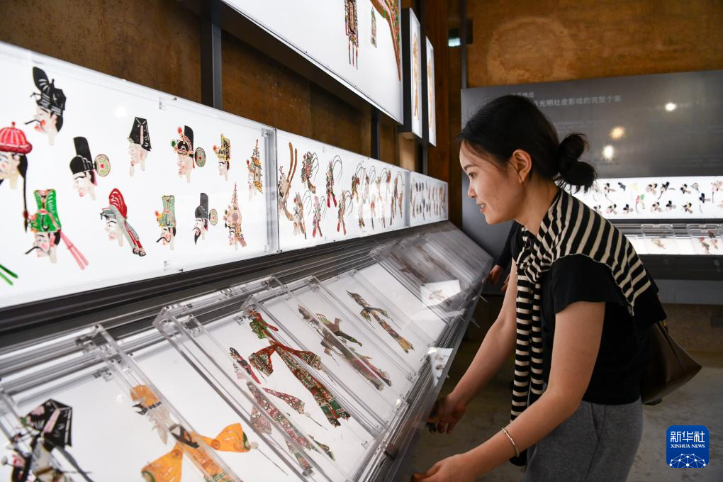 一名游客(ke)在長守戲(xi)劇谷里參觀了解皮(pi)影戲(xi)(11月9日攝(she))。