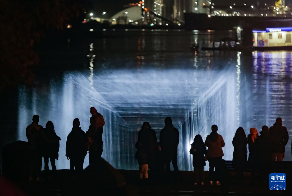 11月(yue)9日,在加拿大(da)溫哥華舉辦的燈光(guang)(guang)節上,人們(men)觀賞一個模擬極光(guang)(guang)的燈光(guang)(guang)裝置。