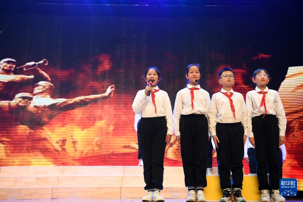 11月13日,在北京市第四(si)中學順義分校(xiao)活動現場的思政課上,順義區龍灣屯中心小學校(xiao)的學生表演情景劇《紅(hong)色少(shao)年成長記》。
