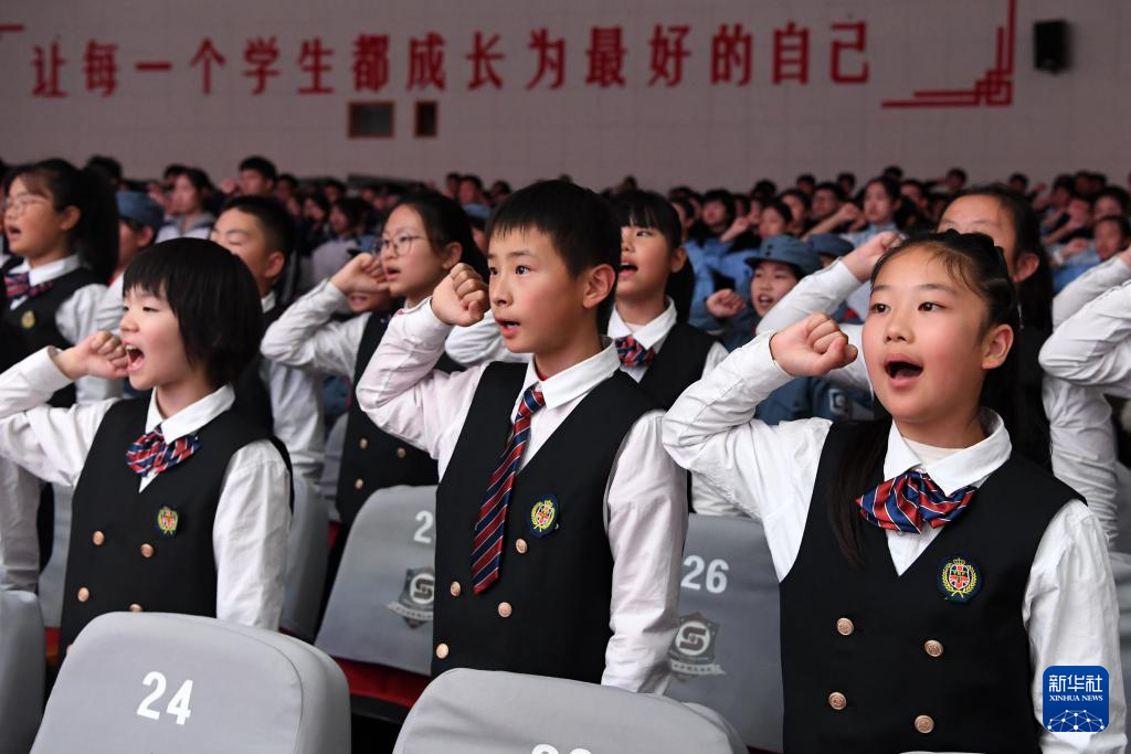 11月13日,在北京市第(di)四中學順義分校活(huo)動現(xian)場的(de)思政課上(shang),學生們共(gong)同宣(xuan)誓。