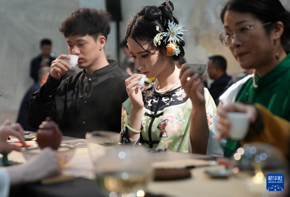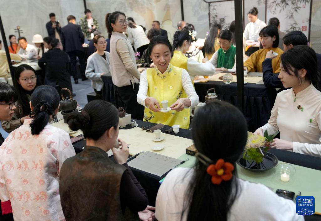 11月14日,人們在(zai)杭州(zhou)秋季茶(cha)博(bo)會(hui)上舉行(xing)的一場茶(cha)會(hui)中品茶(cha)。