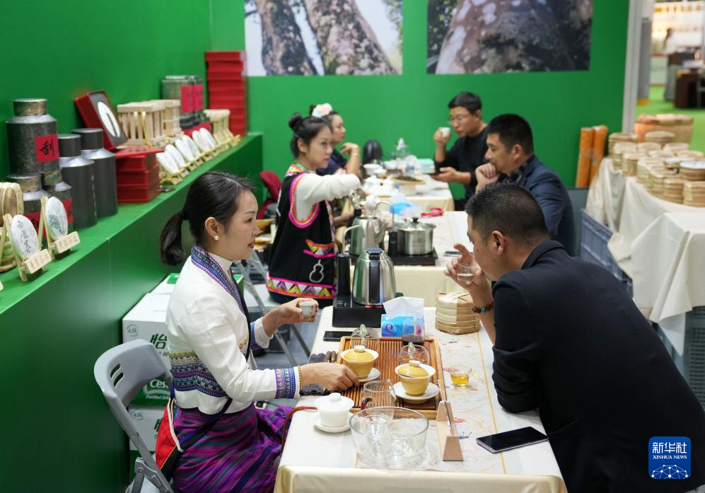 11月14日(ri),人們(men)在杭(hang)州秋季茶博會一家參(can)展商展位上品茶。