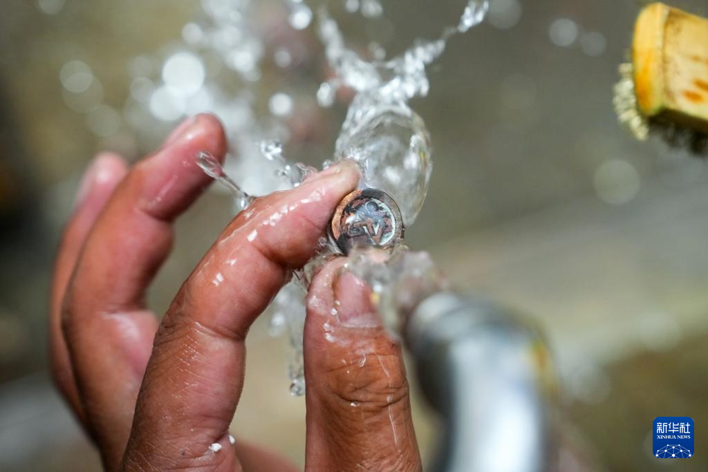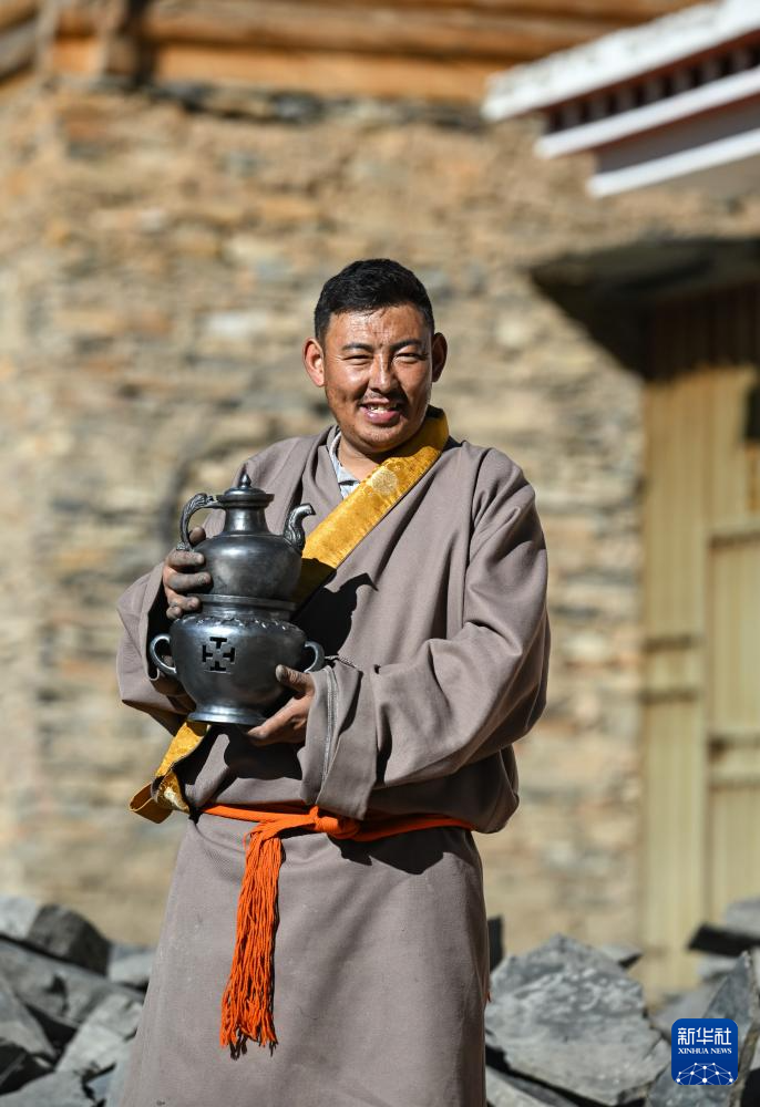 達(da)(da)瓦(wa)扎巴在沖洗初步鑄(zhu)造(zao)完成(cheng)的(de)利(li)瑪銅(tong)文創(chuang)產品(pin),準備對其進行精加(jia)工(gong)(gong)(gong)(11月3日攝)。達(da)(da)瓦(wa)扎巴1992年出(chu)生在四川(chuan)省甘(gan)孜藏(zang)族(zu)自(zi)治州德(de)格縣麥宿鎮一個手(shou)(shou)(shou)工(gong)(gong)(gong)藝(yi)家庭,其家族(zu)有約兩百年制作利(li)瑪銅(tong)鑄(zhu)制品(pin)的(de)歷史。達(da)(da)瓦(wa)扎巴從(cong)小跟隨父親尼瑪學習。如今,他已(yi)是非遺項目(mu)“藏(zang)族(zu)金屬鍛造(zao)技藝(yi)”四川(chuan)省甘(gan)孜州代(dai)表性傳(chuan)承(cheng)(cheng)人。達(da)(da)瓦(wa)扎巴在繼承(cheng)(cheng)傳(chuan)統(tong)工(gong)(gong)(gong)藝(yi)的(de)同時,開(kai)發創(chuang)作時尚文創(chuang)產品(pin),將藏(zang)族(zu)傳(chuan)統(tong)手(shou)(shou)(shou)工(gong)(gong)(gong)藝(yi)推(tui)向國際市(shi)場。目(mu)前(qian),其家族(zu)的(de)“欽(qin)樂(le)工(gong)(gong)(gong)坊”有全職手(shou)(shou)(shou)藝(yi)人約40名。