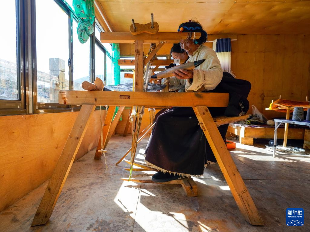 占珠(zhu)(前)在娜(na)(na)葉(xie)編(bian)織(zhi)工(gong)坊使(shi)用老(lao)式(shi)織(zhi)機(ji)制作氆氌(11月3日攝)。在四川省甘孜(zi)藏(zang)族(zu)(zu)自治州德格縣麥宿鎮(zhen),娜(na)(na)葉(xie)家族(zu)(zu)中的(de)(de)(de)女性(xing)以(yi)精湛的(de)(de)(de)編(bian)織(zhi)技藝著稱。她們(men)利用牦(mao)牛絨、羊(yang)絨等物編(bian)織(zhi)出優(you)質(zhi)的(de)(de)(de)氆氌等紡織(zhi)品,深受當(dang)地(di)居(ju)民喜愛(ai)。占珠(zhu)于(yu)1960年出生(sheng)于(yu)麥宿,是娜(na)(na)葉(xie)家族(zu)(zu)編(bian)織(zhi)工(gong)藝的(de)(de)(de)繼承(cheng)者和發(fa)揚者,是非遺項目“藏(zang)族(zu)(zu)牛羊(yang)毛編(bian)織(zhi)技藝”四川省甘孜(zi)州代(dai)表性(xing)傳(chuan)(chuan)承(cheng)人。在女兒扎西(xi)曲措的(de)(de)(de)幫助下,娜(na)(na)葉(xie)編(bian)織(zhi)工(gong)坊的(de)(de)(de)產品日益豐富(fu),在傳(chuan)(chuan)承(cheng)家族(zu)(zu)古老(lao)技藝的(de)(de)(de)同(tong)時(shi),帶(dai)動(dong)周邊鄉親共同(tong)致富(fu)。