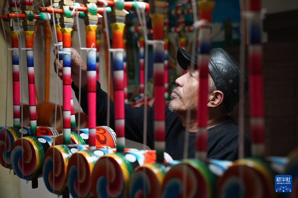 11月5日,在(zai)(zai)(zai)四川(chuan)省甘孜藏族自治(zhi)州巴(ba)(ba)塘(tang)縣(xian),王(wang)(wang)扎(zha)西在(zai)(zai)(zai)家中(zhong)整理弦胡(hu)。在(zai)(zai)(zai)四川(chuan)省甘孜藏族自治(zhi)州巴(ba)(ba)塘(tang)縣(xian),人們時常跳起弦子(zi)(zi)舞(wu)(wu),這是一種集(ji)詩、琴、歌(ge)、舞(wu)(wu)于一體的(de)(de)綜(zong)合(he)性表演(yan)(yan)藝術,領舞(wu)(wu)的(de)(de)弦胡(hu)手是表演(yan)(yan)是否成功的(de)(de)關(guan)鍵。弦胡(hu),通常用柏木做琴筒,在(zai)(zai)(zai)琴桿頂部(bu)雕刻龍頭寶塔。今(jin)年66歲的(de)(de)弦胡(hu)手王(wang)(wang)扎(zha)西是“巴(ba)(ba)塘(tang)弦子(zi)(zi)舞(wu)(wu)”的(de)(de)省級(ji)非遺傳承(cheng)人。為保(bao)護并(bing)傳承(cheng)弦子(zi)(zi)舞(wu)(wu)和弦胡(hu)制作技藝,王(wang)(wang)扎(zha)西在(zai)(zai)(zai)自己房屋里建起弦胡(hu)制作坊,并(bing)在(zai)(zai)(zai)各(ge)類(lei)活動(dong)中(zhong)表演(yan)(yan),展示弦胡(hu)的(de)(de)韻律和弦子(zi)(zi)舞(wu)(wu)的(de)(de)魅力。