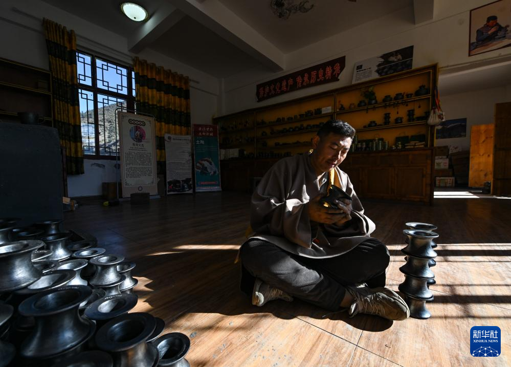 根呷火(huo)熱展示制作(zuo)的(de)(de)黑(hei)陶產品(11月3日攝)。在四(si)川省甘孜藏族自(zi)治州德格縣麥宿(su)鎮,根呷火(huo)熱忙著制作(zuo)成都一家(jia)餐(can)飲(yin)企(qi)業的(de)(de)黑(hei)陶訂(ding)單。今年39歲(sui)的(de)(de)根呷火(huo)熱是四(si)川省級非(fei)遺麥宿(su)黑(hei)陶的(de)(de)傳(chuan)承人,也(ye)是麥宿(su)當地黑(hei)陶工(gong)坊的(de)(de)創始(shi)人。搗土、塑形、風干、燒制……在傳(chuan)承與創新中,根呷火(huo)熱不斷鉆研,讓手(shou)工(gong)藝品從(cong)雪域(yu)深山(shan)走向省內(nei)外消費市場。