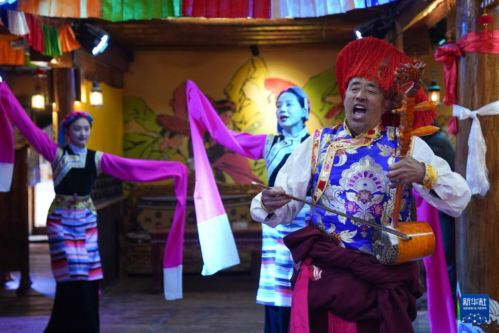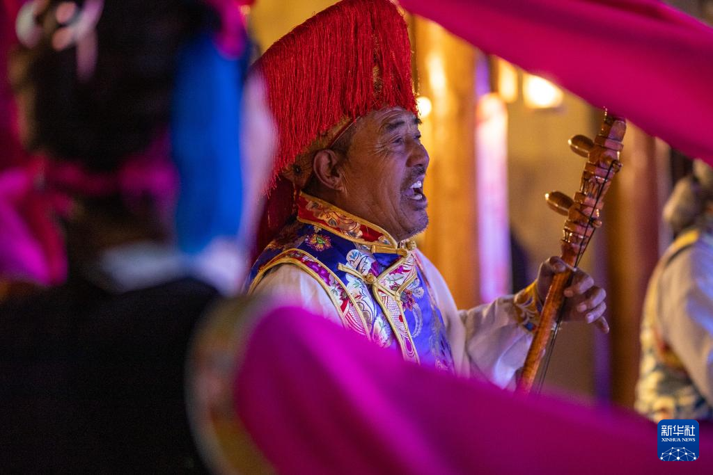 11月5日,在(zai)四川省甘(gan)孜藏族自治(zhi)(zhi)州(zhou)巴(ba)塘(tang)(tang)縣,王(wang)扎西在(zai)非(fei)遺傳習體驗館表演(yan)(yan)巴(ba)塘(tang)(tang)弦(xian)子舞(wu)(wu)。在(zai)四川省甘(gan)孜藏族自治(zhi)(zhi)州(zhou)巴(ba)塘(tang)(tang)縣,人們(men)時常跳起弦(xian)子舞(wu)(wu),這是一種集詩、琴、歌(ge)、舞(wu)(wu)于一體的(de)綜合(he)性表演(yan)(yan)藝術,領舞(wu)(wu)的(de)弦(xian)胡(hu)手是表演(yan)(yan)是否成功(gong)的(de)關鍵。弦(xian)胡(hu),通常用(yong)柏木做琴筒(tong),在(zai)琴桿頂部雕刻龍頭寶塔。今年(nian)66歲的(de)弦(xian)胡(hu)手王(wang)扎西是“巴(ba)塘(tang)(tang)弦(xian)子舞(wu)(wu)”的(de)省級非(fei)遺傳承(cheng)人。為(wei)保護并(bing)傳承(cheng)弦(xian)子舞(wu)(wu)和(he)弦(xian)胡(hu)制作技藝,王(wang)扎西在(zai)自己房屋里建起弦(xian)胡(hu)制作坊(fang),并(bing)在(zai)各類活動中表演(yan)(yan),展示弦(xian)胡(hu)的(de)韻律(lv)和(he)弦(xian)子舞(wu)(wu)的(de)魅力。