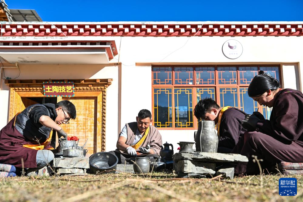 根呷(xia)火(huo)熱(左二)和徒弟們一(yi)起制作(zuo)黑陶產品(11月(yue)3日攝)。在四(si)川(chuan)省甘孜(zi)藏(zang)族自(zi)治州德(de)格(ge)縣(xian)麥宿鎮,根呷(xia)火(huo)熱忙著制作(zuo)成都一(yi)家餐飲企業的(de)黑陶訂(ding)單。今年39歲的(de)根呷(xia)火(huo)熱是四(si)川(chuan)省級(ji)非(fei)遺麥宿黑陶的(de)傳承(cheng)人,也是麥宿當(dang)地黑陶工坊的(de)創(chuang)始人。搗土、塑形(xing)、風干、燒制……在傳承(cheng)與創(chuang)新中,根呷(xia)火(huo)熱不(bu)斷鉆(zhan)研,讓手(shou)工藝品從雪(xue)域(yu)深山走(zou)向(xiang)省內外(wai)消費市場。