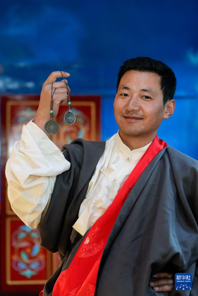 達瓦扎(zha)巴(ba)在展示“欽樂(le)工(gong)(gong)坊”采(cai)用利瑪(ma)銅鑄造工(gong)(gong)藝(yi)(yi)制作的(de)(de)文創(chuang)產品(11月(yue)3日攝(she))。達瓦扎(zha)巴(ba)1992年出(chu)生在四川(chuan)省甘(gan)孜藏族(zu)自治州德格縣麥宿鎮一個手(shou)工(gong)(gong)藝(yi)(yi)家庭,其(qi)家族(zu)有約兩(liang)百年制作利瑪(ma)銅鑄制品的(de)(de)歷史。達瓦扎(zha)巴(ba)從小(xiao)跟隨父親(qin)尼瑪(ma)學(xue)習。如今,他已是非遺項目“藏族(zu)金(jin)屬鍛造技(ji)藝(yi)(yi)”四川(chuan)省甘(gan)孜州代表性傳承人。達瓦扎(zha)巴(ba)在繼承傳統(tong)(tong)工(gong)(gong)藝(yi)(yi)的(de)(de)同(tong)時,開發創(chuang)作時尚文創(chuang)產品,將藏族(zu)傳統(tong)(tong)手(shou)工(gong)(gong)藝(yi)(yi)推向國際市(shi)場。目前,其(qi)家族(zu)的(de)(de)“欽樂(le)工(gong)(gong)坊”有全職手(shou)藝(yi)(yi)人約40名。