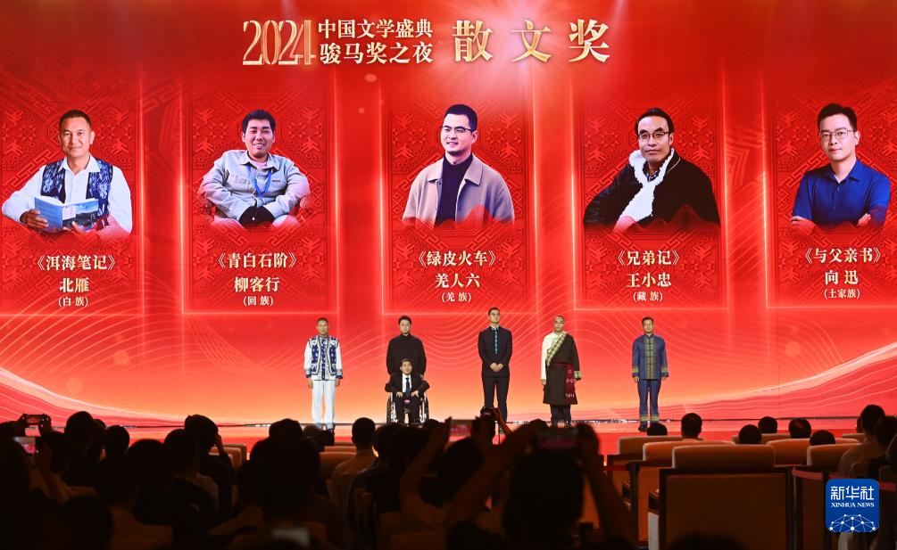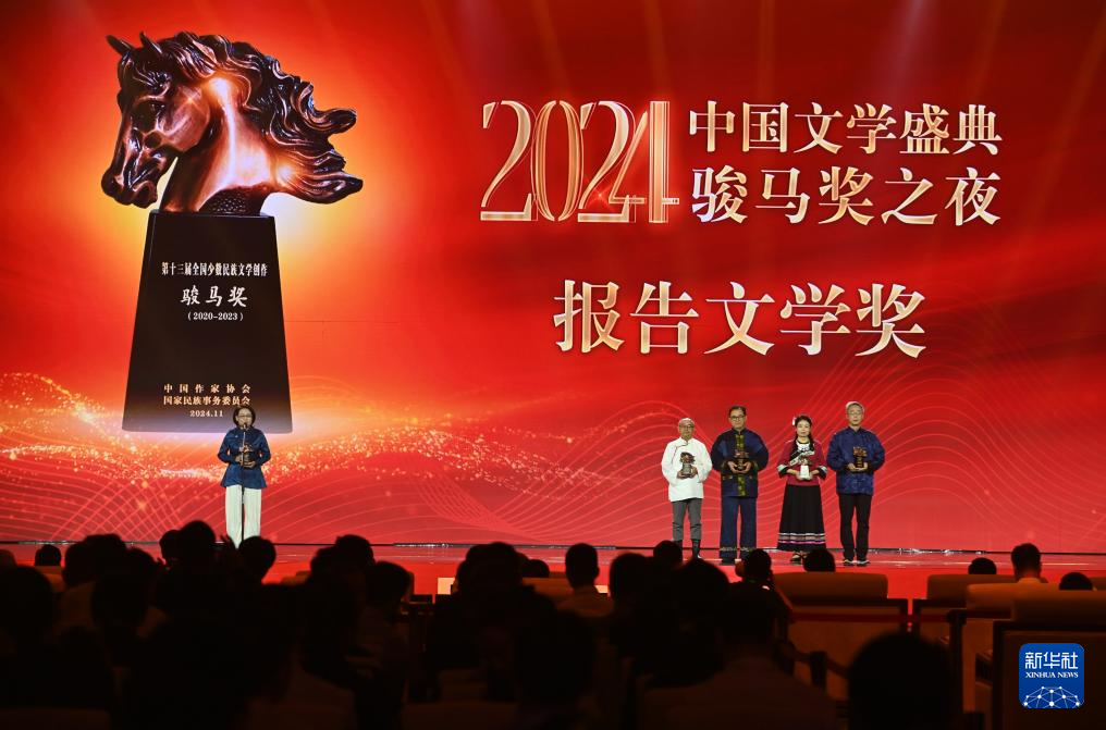 11月16日(ri)晚,由(you)中(zhong)國作(zuo)家協會、國家民(min)族(zu)事務委員會、廣西壯(zhuang)族(zu)自治區人民(min)政府(fu)共(gong)同主辦的“2024中(zhong)國文學盛典·駿(jun)馬獎之夜”在(zai)廣西南寧國際會展中(zhong)心(xin)舉行。