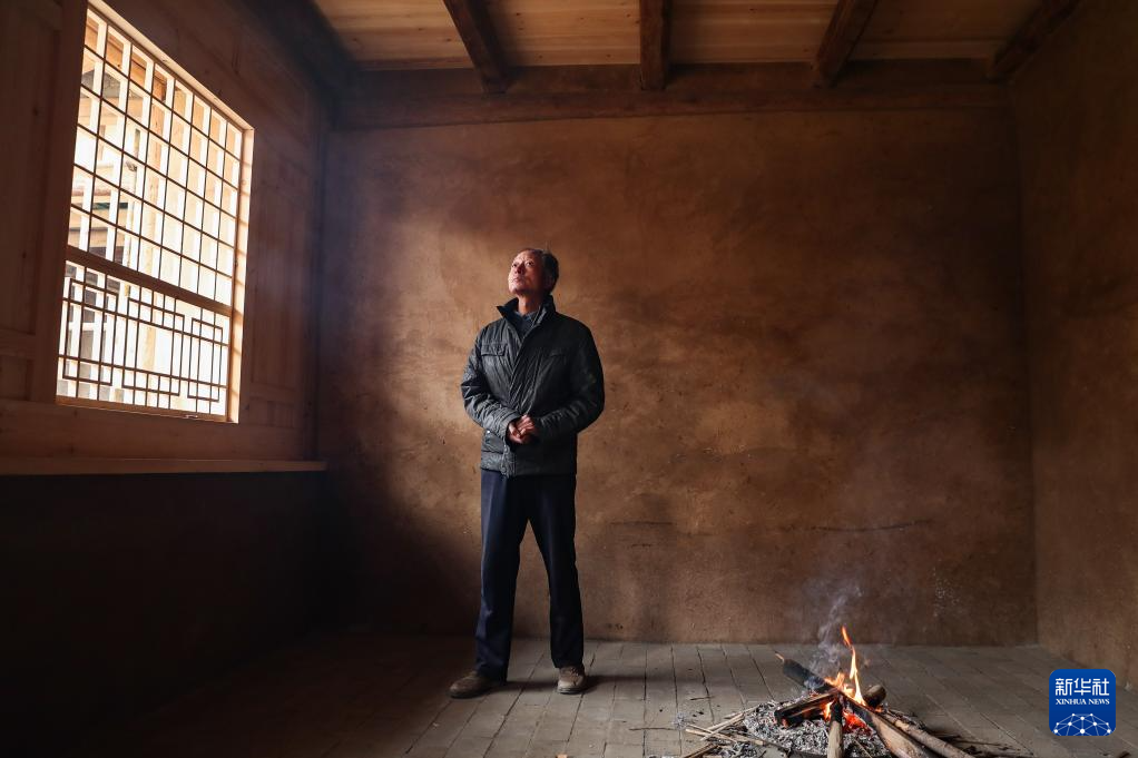 11月18日,在(zai)甘肅(su)省(sheng)隴南市宕(dang)昌縣哈達鋪鎮上街(jie)村,村民在(zai)檢查被列為縣級文物保護單位、已得到修繕的自家祖宅。