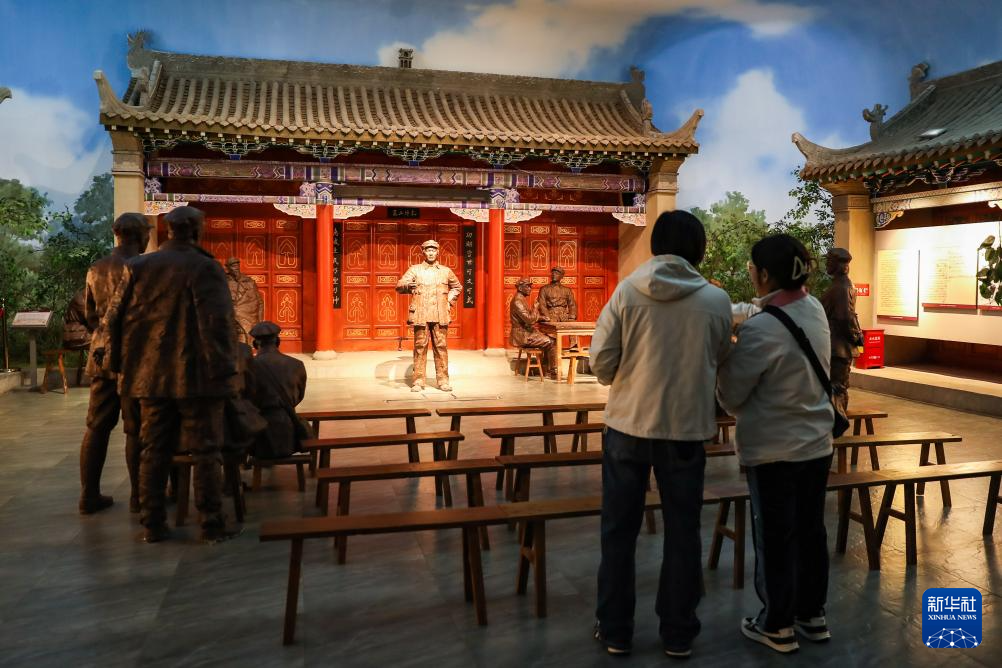 11月18日(ri),游客走進全(quan)國重點文(wen)物保護(hu)單(dan)位(wei)哈(ha)達鋪(pu)會(hui)議舊址中的毛澤東、張聞天住室(義和昌藥鋪(pu))參觀(無人機照(zhao)片)。