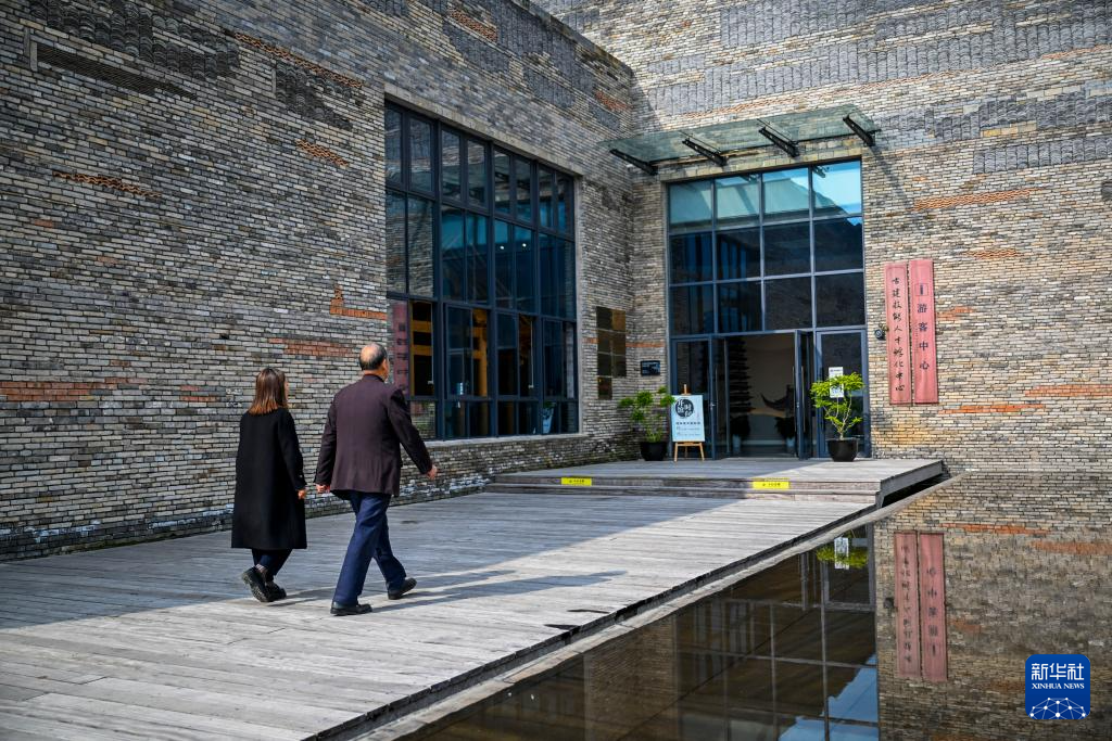 11月22日,黃大樹(右)走進匯(hui)溪古建營造技藝博物館。