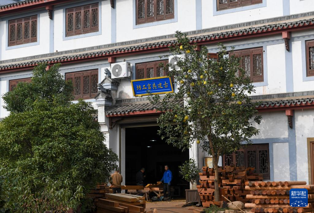11月22日(ri),在(zai)“古建(jian)共富工坊”,木工師傅在(zai)制作(zuo)昂頭(tou)。