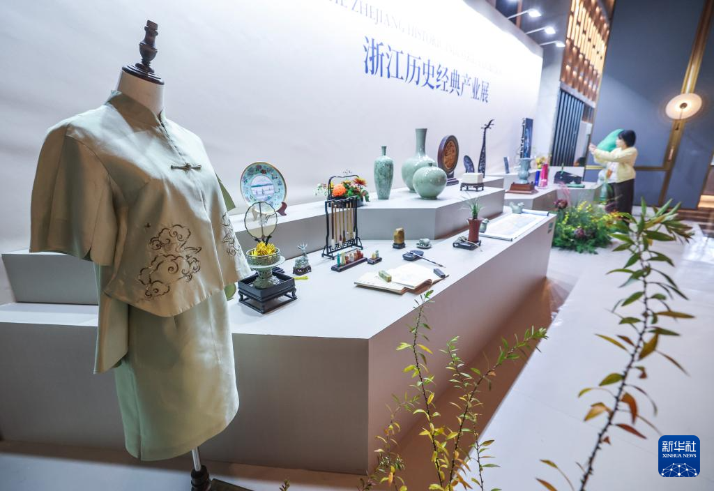 這是11月25日拍攝的(de)(de)浙江(jiang)歷史經典產業(ye)展臺上(shang)展示(shi)的(de)(de)浙江(jiang)特色產業(ye)名品和大師作(zuo)品。