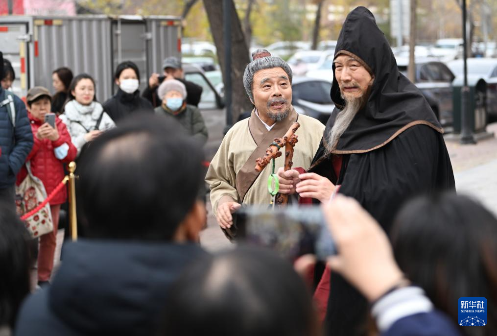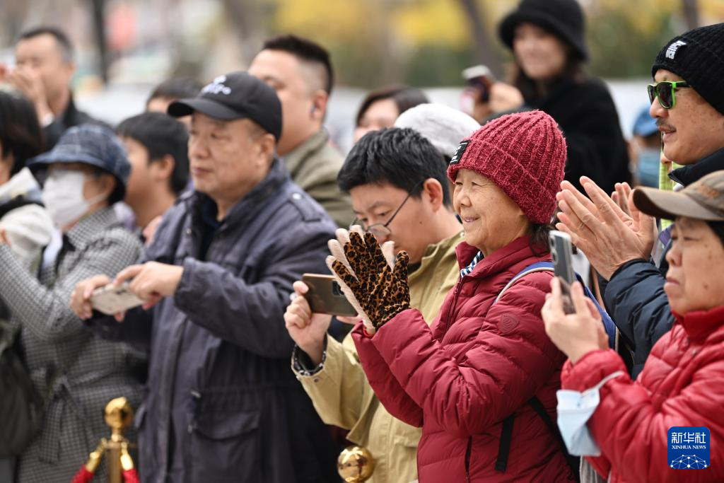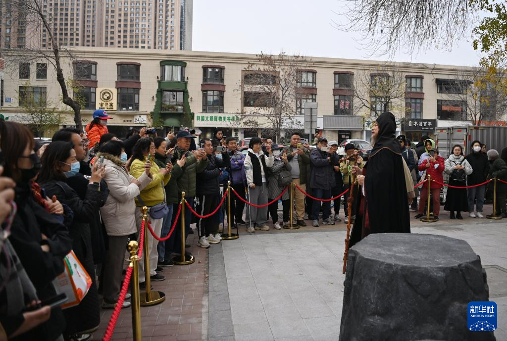 11月24日,觀眾在(zai)天津(jin)人民(min)藝術劇院(yuan)門前觀看演出。