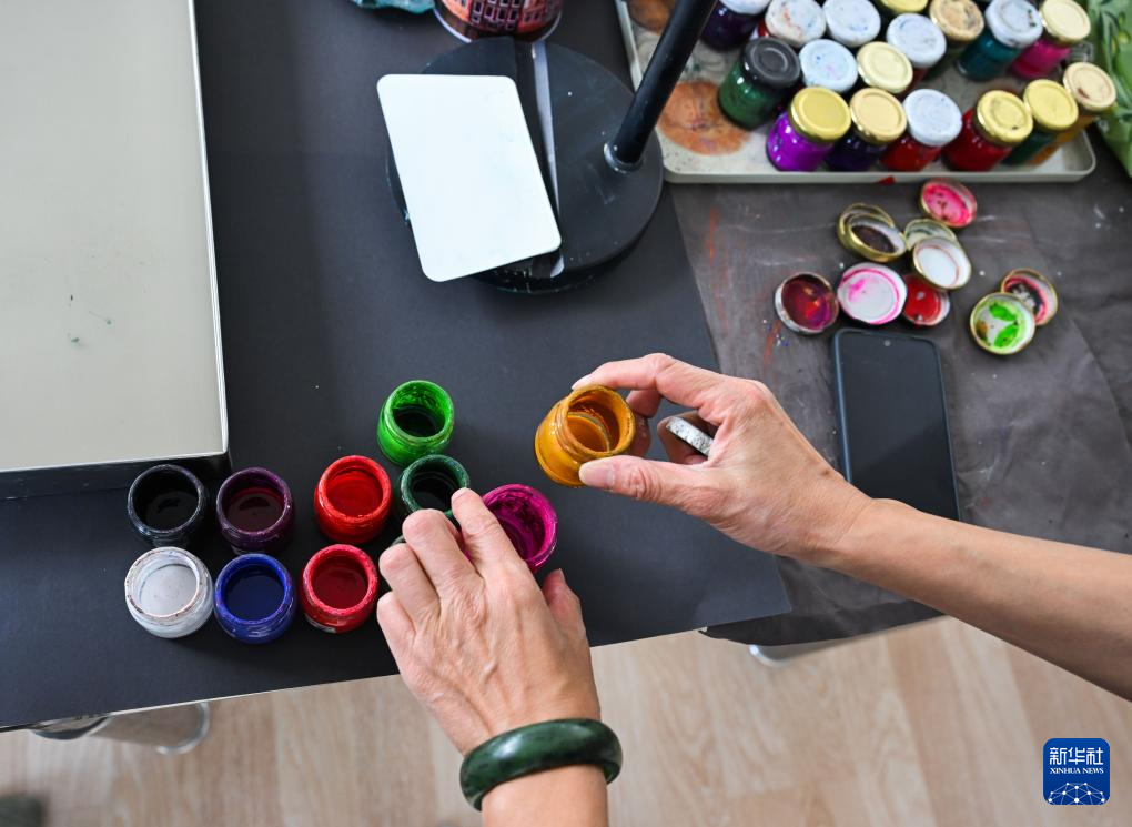 11月5日(ri),李昕桐在土耳其伊斯坦布(bu)爾的家中測試(shi)水拓畫(hua)顏料。