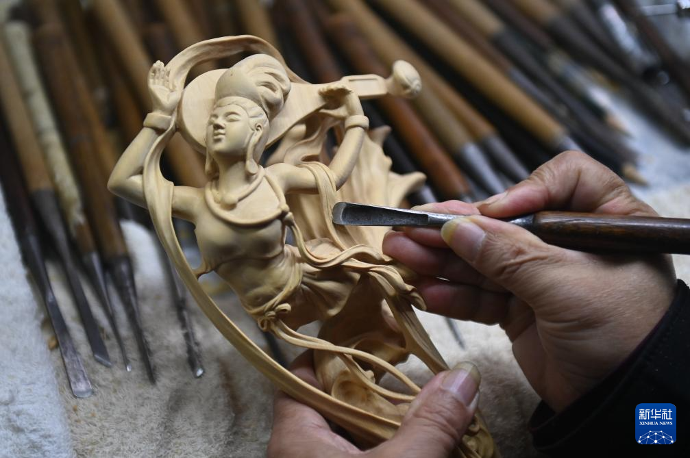 在浙江(jiang)溫州樂清柳(liu)市鎮(zhen)的(de)(de)一個墻壁(bi)略顯(xian)斑駁的(de)(de)臨街房間(jian),今年75歲的(de)(de)虞(yu)金(jin)順靠窗端坐,左(zuo)手按壓著一塊實(shi)坯,布滿老(lao)繭的(de)(de)右手熟練地切換(huan)各種形式的(de)(de)塑刀(dao),雕刻的(de)(de)飛(fei)天(tian)舞袖(xiu)愈加清晰。
