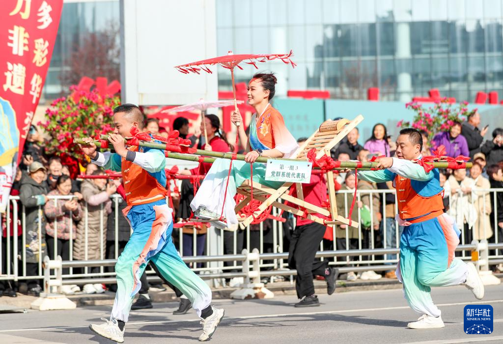 當日,四川(chuan)省華鎣市舉行國家級(ji)非遺(yi)(yi)“華鎣山滑(hua)竿抬幺妹”展(zhan)演及比賽活(huo)(huo)動,該市各鄉鎮、街道及企事業單位的24支隊(dui)伍參加了活(huo)(huo)動。具有地方(fang)特色的“華鎣山滑(hua)竿抬幺妹”民(min)俗文體活(huo)(huo)動于2021年(nian)被列入國家級(ji)非物(wu)質文化(hua)遺(yi)(yi)產(chan)名錄。