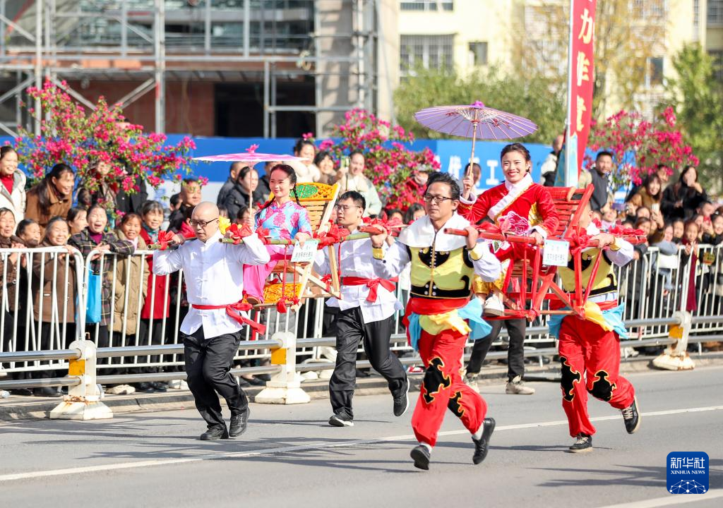 當(dang)日,四川省(sheng)華(hua)(hua)鎣(ying)市(shi)舉(ju)行國(guo)家(jia)級(ji)非(fei)遺(yi)“華(hua)(hua)鎣(ying)山滑竿(gan)抬(tai)(tai)幺妹”展演及比賽活動(dong)(dong),該市(shi)各鄉鎮、街道及企事業單位(wei)的24支(zhi)隊伍參加(jia)了(le)活動(dong)(dong)。具有地方特色的“華(hua)(hua)鎣(ying)山滑竿(gan)抬(tai)(tai)幺妹”民俗文體活動(dong)(dong)于2021年被列入國(guo)家(jia)級(ji)非(fei)物質文化遺(yi)產名錄。